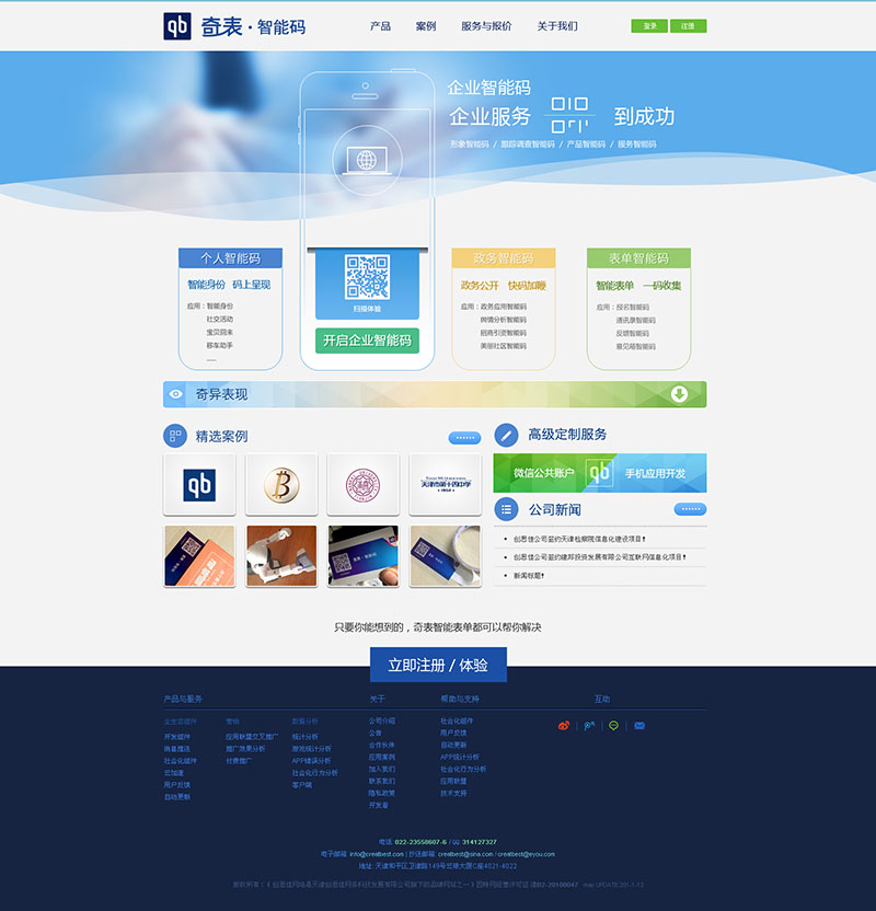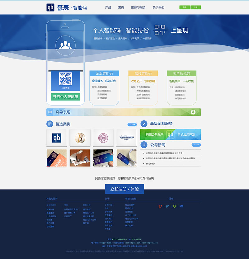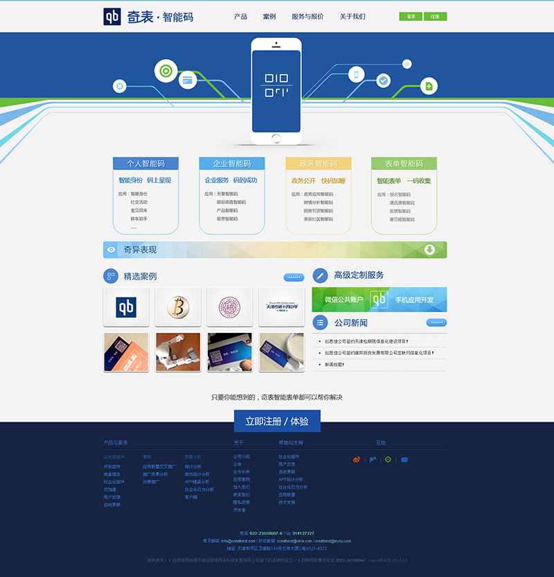 天津奇表智能碼軟件提供高端手機網站開發(fā)、移動應用二維碼、智能碼開發(fā)制作及手機應用開發(fā)服務;為工商局、中海油、南開大學、天津站、海信、農業(yè)銀行等知名單位提供了專業(yè)的智能碼應用開發(fā)及軟件開發(fā)服務...