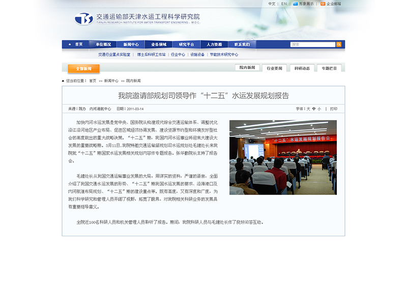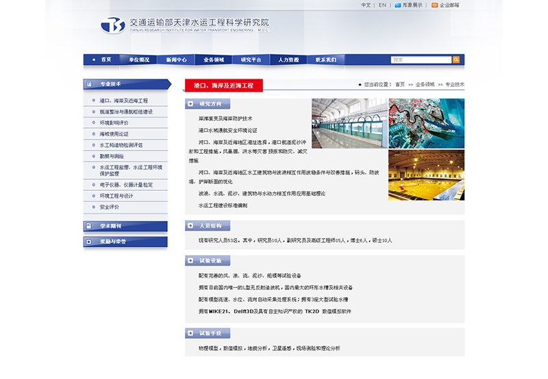 交通運輸部天津水運工程科學(xué)研究院(簡稱天科院),是交通運輸部直屬科研事業(yè)單位,承擔(dān)海岸河口、內(nèi)河航道、環(huán)境保護(hù)、港工結(jié)構(gòu)、通航、水利等領(lǐng)域的科研、技術(shù)咨詢工作...