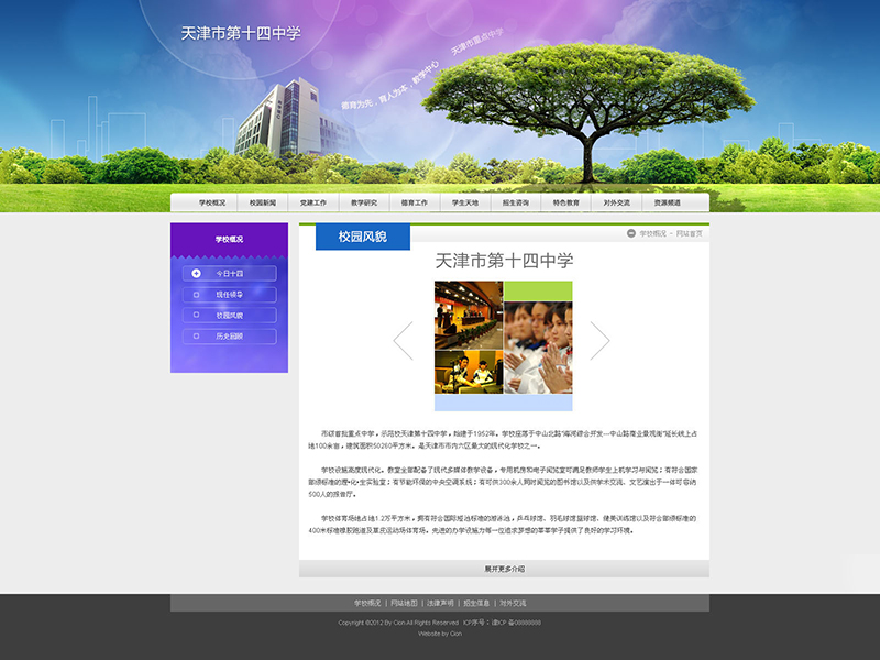 天津市第十四中學座落于河北區(qū)中山北路上,創(chuàng)建于1952年8月。建校初期僅設有初中部,1958年招收高中學生成為完全中學。1989年被確定為天津市首批市級重點中學,2003年被天津市教委批準為第二批天津市示范高中校,2013年被批準為天津市第二批特色高中實驗校...